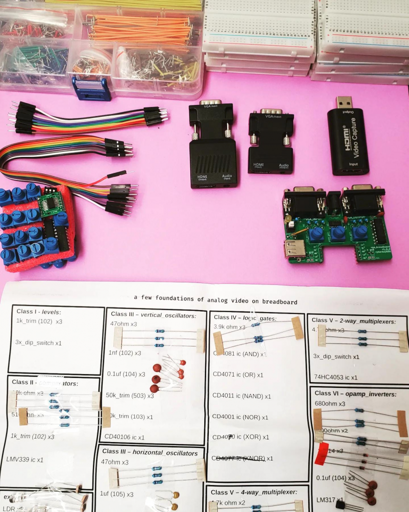 this class is interactive, beginner friendly and one of a kind! – you will receive everything you need to build the vga video synths in the mail including the custom vga_breadboard_module only available through this class (one day i will release this also as a product in the shop)